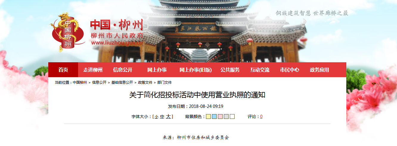 柳州:關(guān)于簡化招投標(biāo)活動中使用營業(yè)執(zhí)照的通知