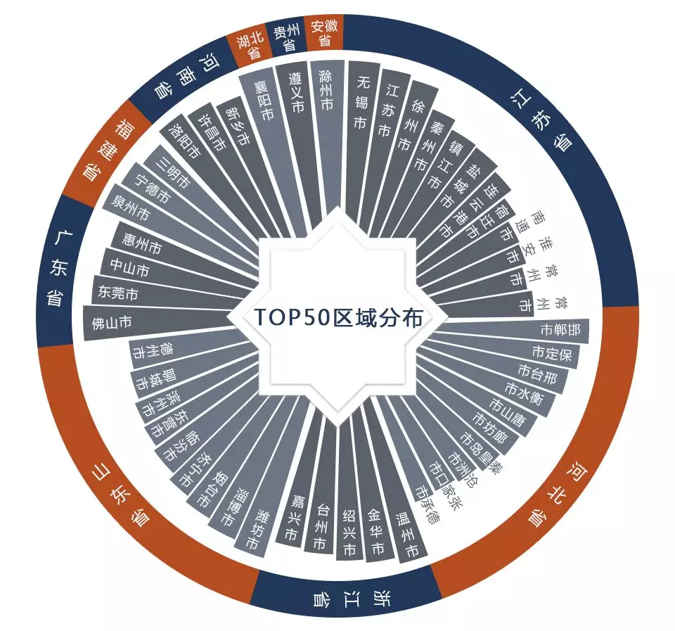 ▲失信黑名單企業(yè)數(shù)量TOP50區(qū)域分布