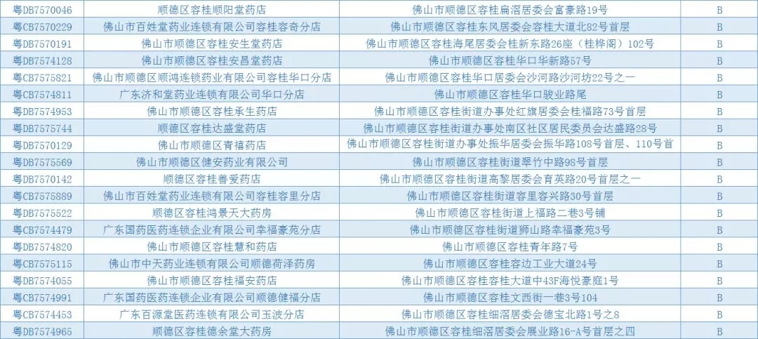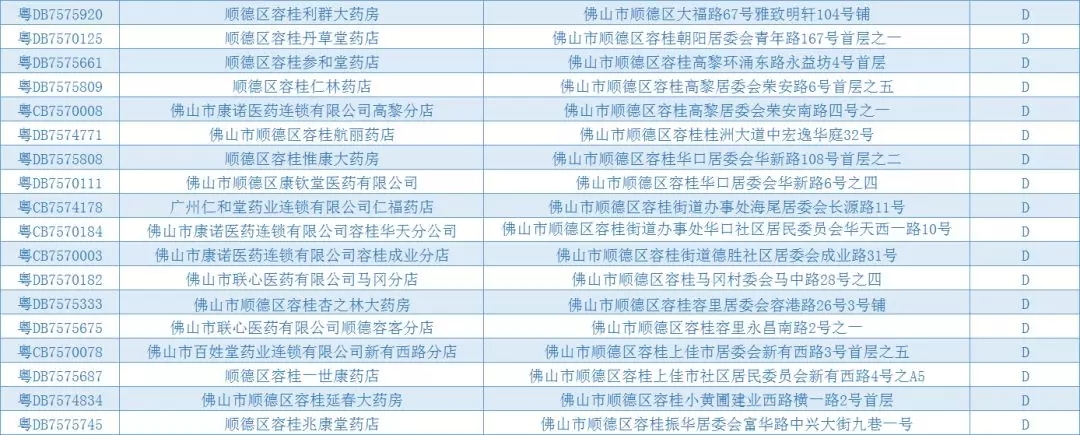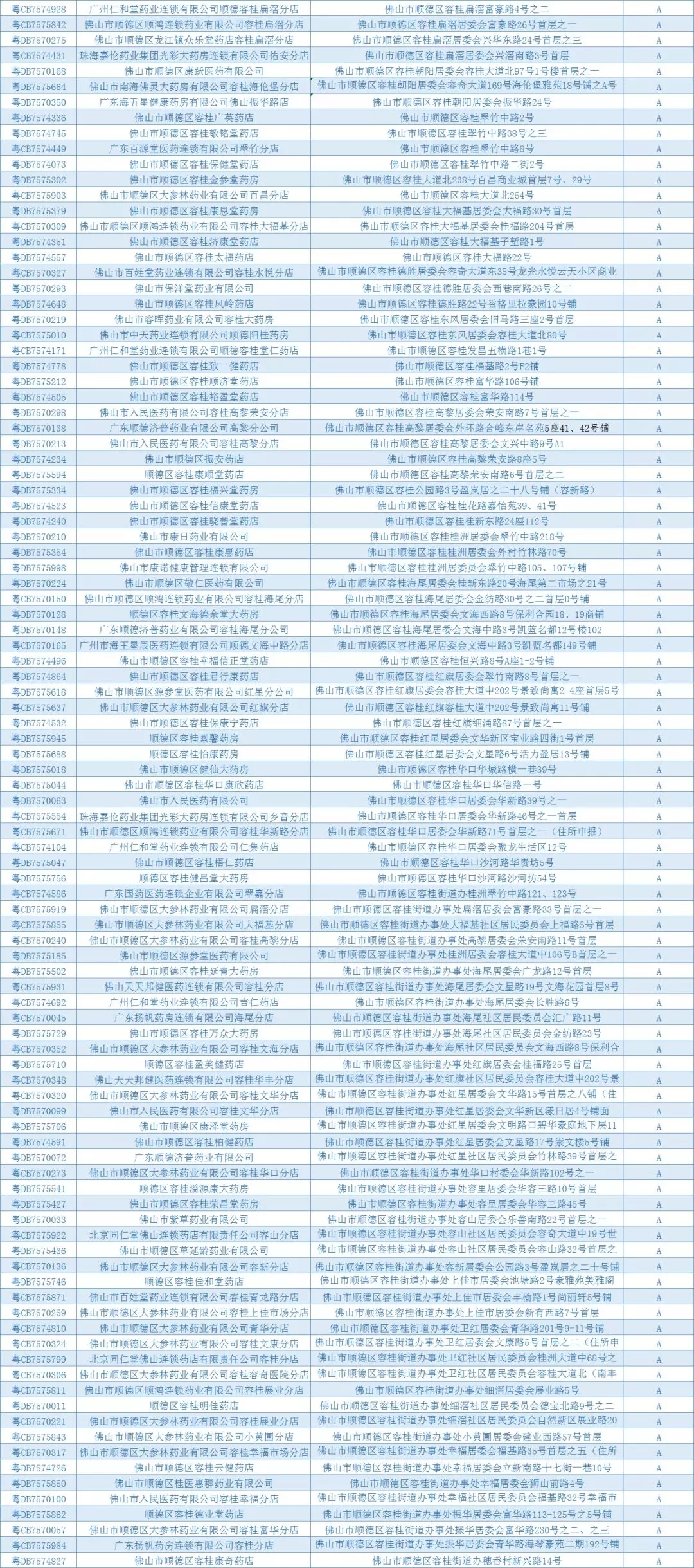 順德區(qū)2018年藥品零售企業(yè)信用評級結(jié)果